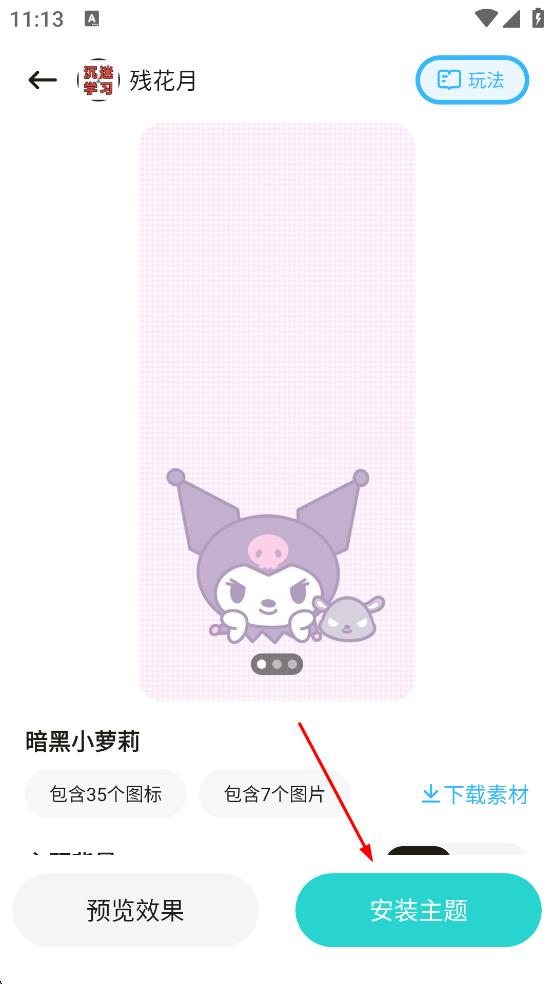 3、进入主题详情页面后,点击下方“安装主题”按钮,按照软件提示完成后续操作,即可将选中的主题安装到设备中。