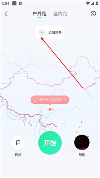 2、在户外跑页面点击添加装备,进入添加装备页面。