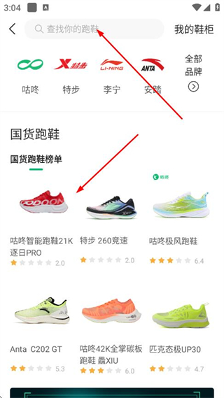 4、通过搜索或浏览选择想要添加的跑鞋,点击进入跑鞋详情页面。