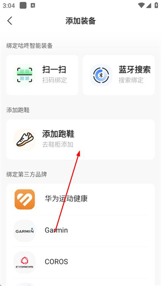 3、在添加装备页面点击添加跑鞋,进入跑鞋选择页面。