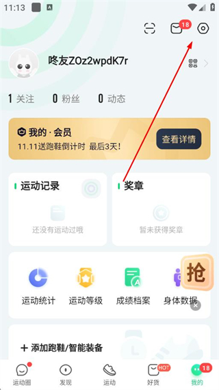 2、在我的页面,点击右上角设置图标,进入设置页面。
