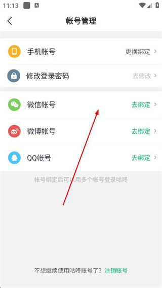 4、点击微信帐号右侧的去绑定,完成微信账号绑定。