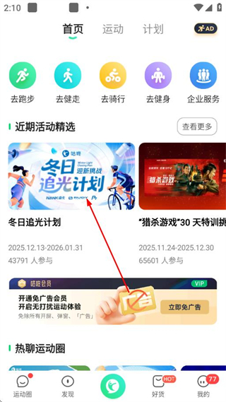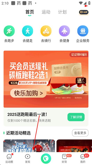 1、打开咕咚APP,在首页的近期活动精选板块中选择目标活动。