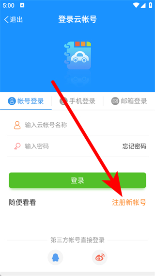 2、在登录云帐号页面,点击注册新帐号,进入注册页面。