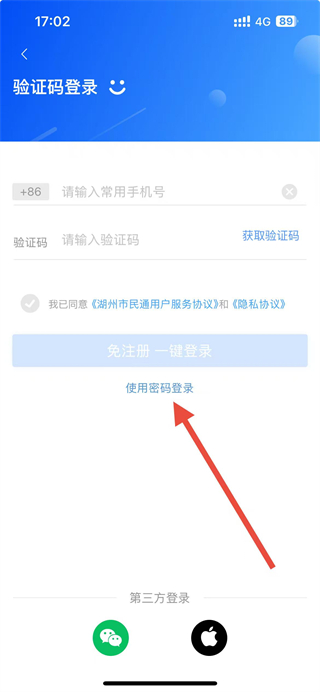 2、自动跳转到登录界面,找到并点击使用密码登录选项,切换至密码登录页面。
