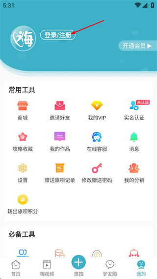3、在个人中心页面找到登录/注册按钮,点击该按钮跳转至账号登录的操作界面。