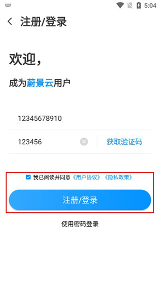 4、勾选我已阅读并同意相关协议的选项,点击界面中的注册/登录按钮完成操作。