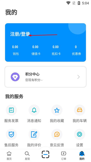 2、在我的页面找到注册/登录按钮,点击该按钮跳转至注册/登录的操作界面。