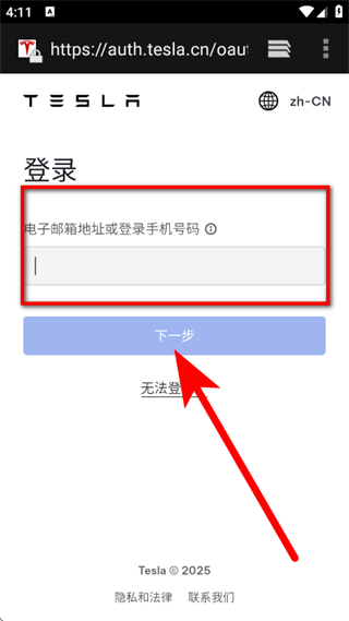 2、在登录页面,在输入框填写信息,点击下方下一步。