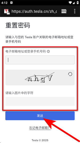 4、在重置密码页面,输入手机号码,点击发送,完成密码重置。