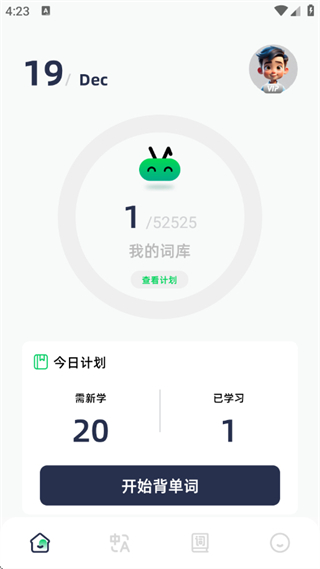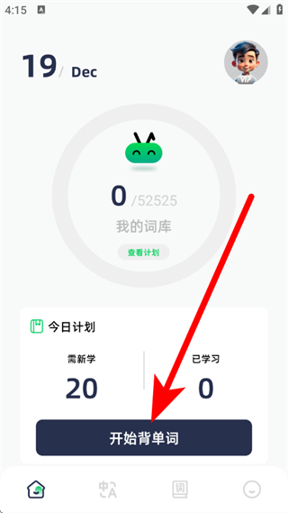 1、打开知云文献翻译的背单词页面,点击开始背单词,进入背单词环节。