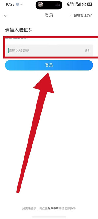 5、进入验证码输入页面后,将收到的短信验证码填入,点击登录,即可完成账号登录。
