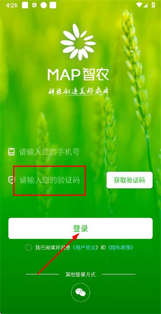 3、在验证码输入框中填写收到的验证码,点击登录完成账号的登录操作。
