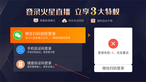 3、进入登录方式的页面内,点击键盘验证码登录的按钮。