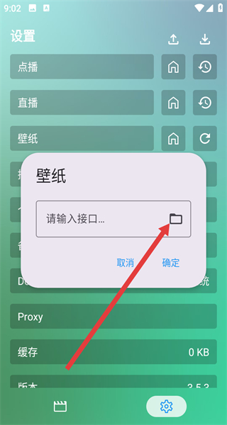 3、在壁纸弹窗内,点击输入框右侧的文件图标,进入设备的文件选择界面。