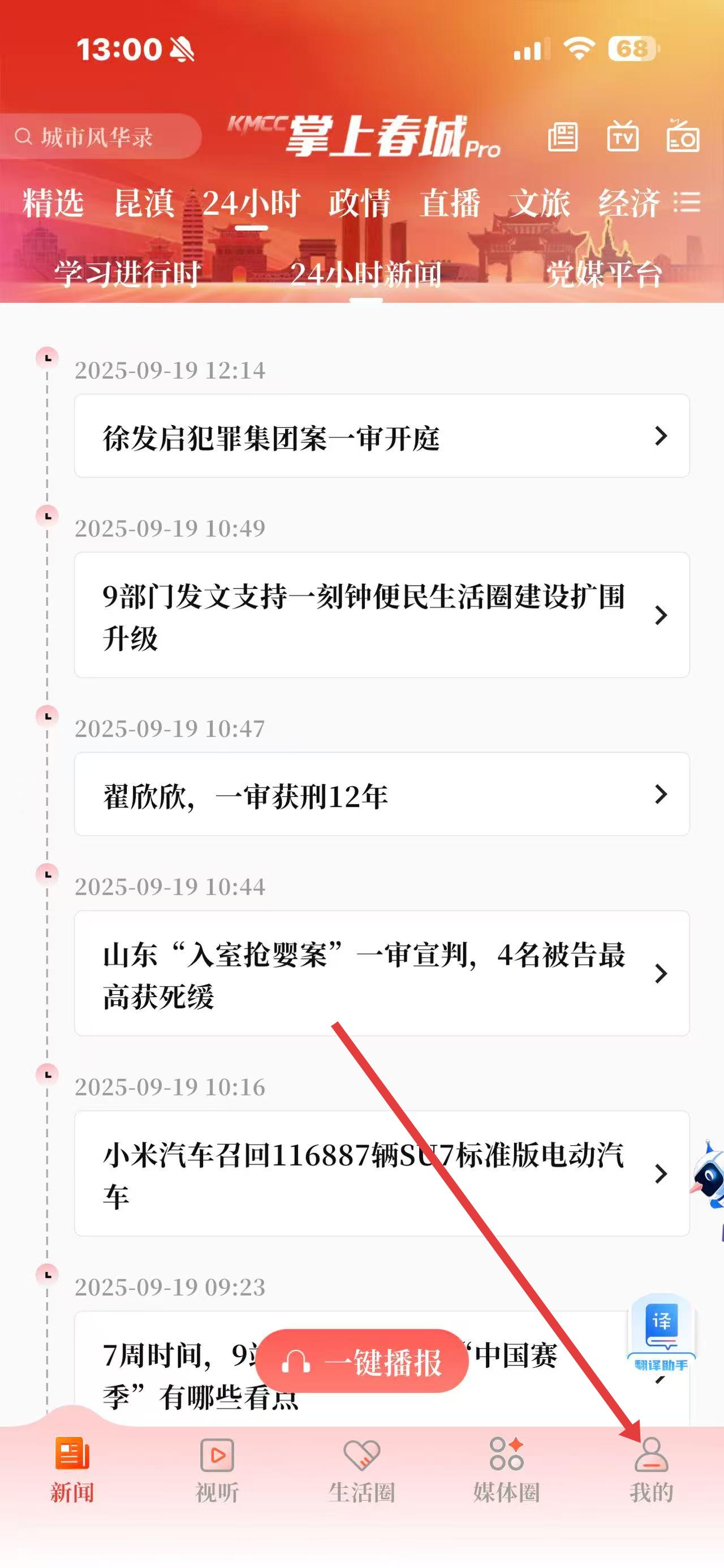 1、打开掌上春城app,点击底部导航栏最右侧的我的。