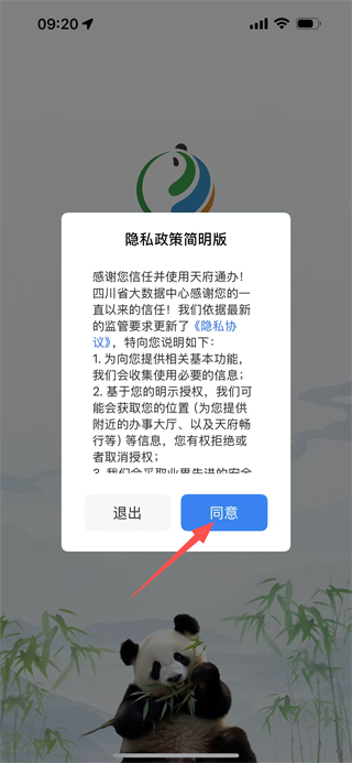 1、在隐私政策简明版弹窗中,点击同意,进入天府通办首页。