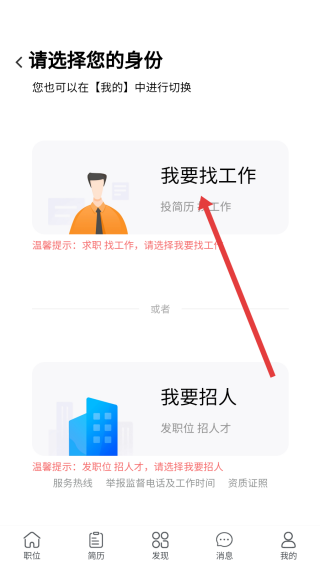 1、在我的页面中,点击我要找工作区域,即可开始登录操作。