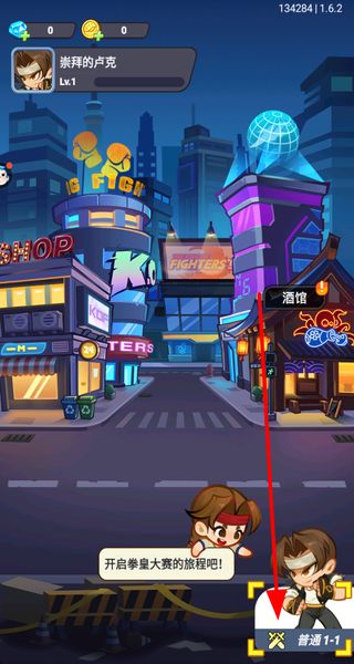 1、进入游戏后,选择对应的关卡入口,开启拳皇大赛的旅程,初始可从基础关卡开始挑战。