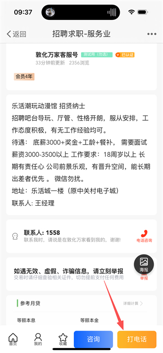 3、在岗位详情页面点击打电话按钮,弹出呼叫确认弹窗。