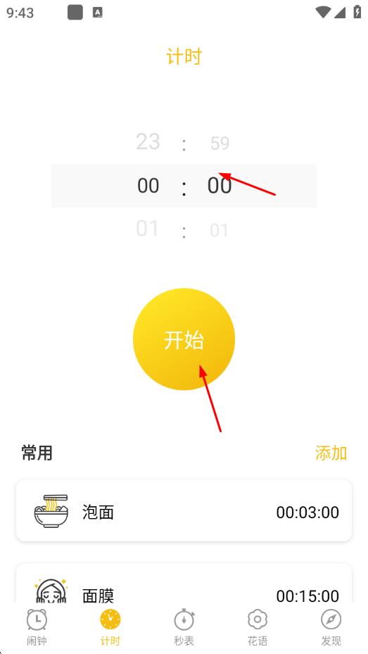 2、进入计时页面后,设置好目标时长,点击开始按钮启动计时。