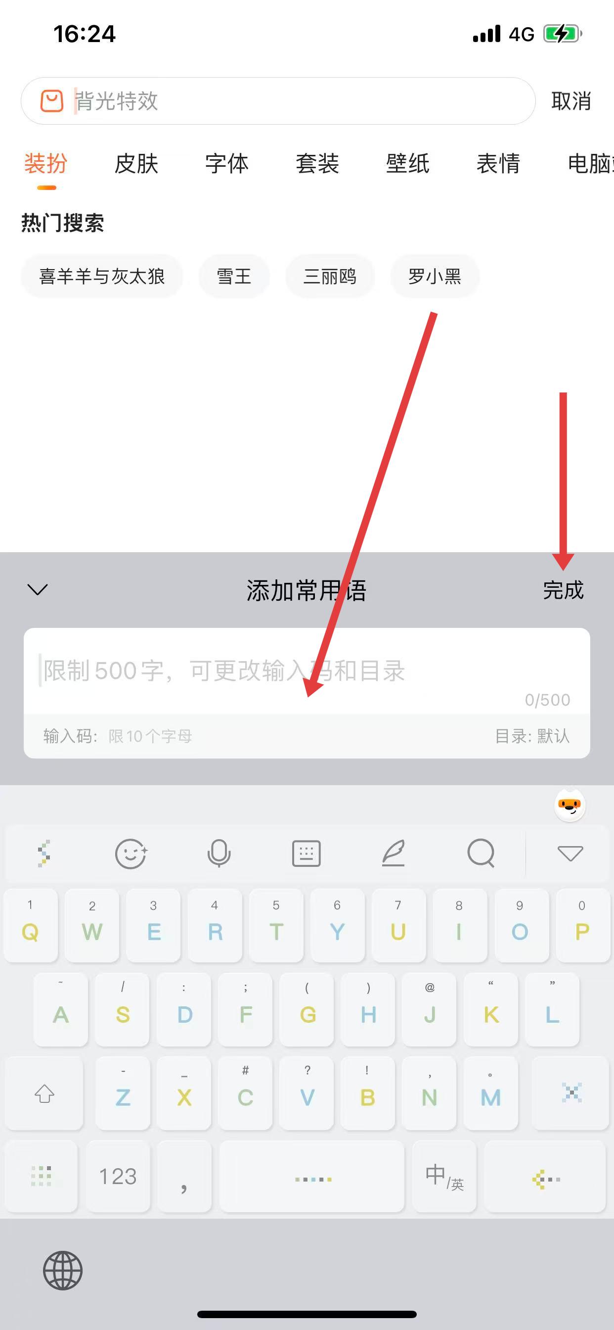 4、在弹出的添加常用语输入框中,输入想要设置的快捷短语内容,点击完成即可。