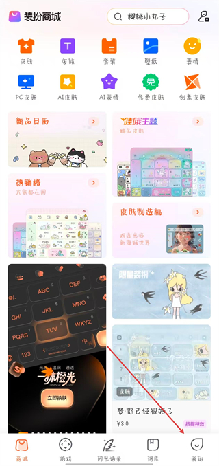1、打开搜狗输入法,进入装扮商城界面,点击右下角我的选项。