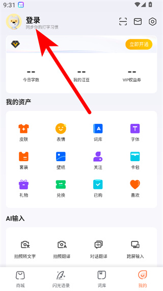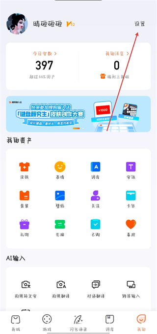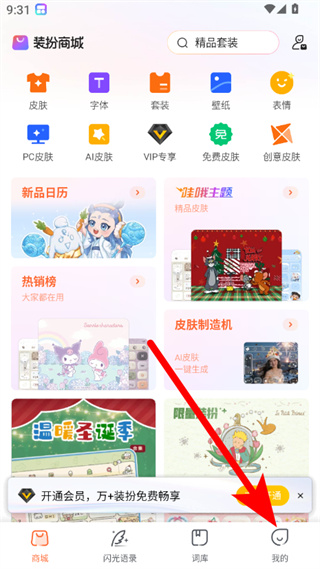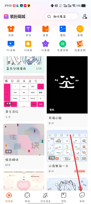 1、在搜狗输入法装扮商城页,点击右下角我的选项,进入个人页面。
