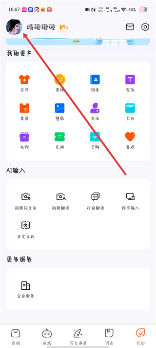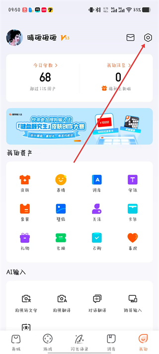1、打开搜狗输入法应用,点击我的选项,即可进入我的页面。
