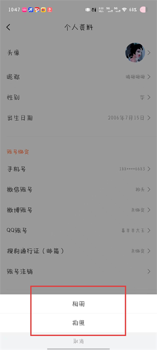 4、根据需求选择相册或拍照,即可完成搜狗输入法头像的更改。