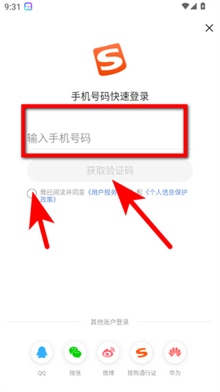 3、在登录界面选择手机号快速登录,勾选协议后输入手机号码。
