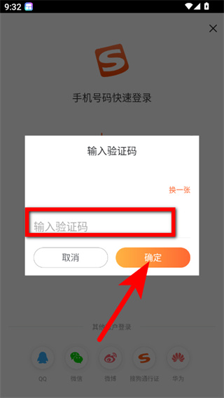 4、获取验证码后填入输入框,点击确定按钮完成手机号登录操作。