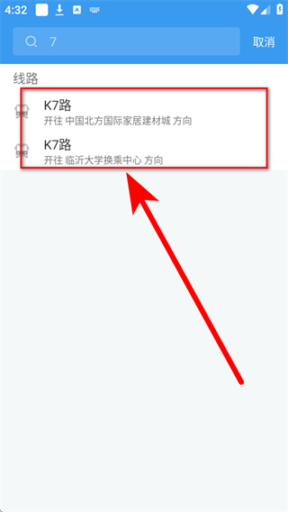 3、输入要查询的公交路线,搜索后选择目标线路。