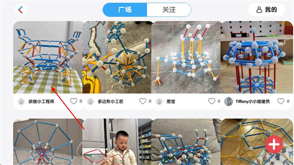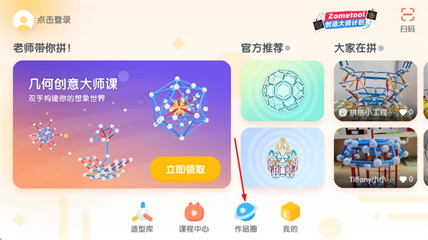 1、在Zometool首页点击作品圈选项,进入作品广场页面。
