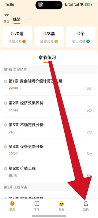 1、打开鸭题库,进入后点击底部导航栏的我的,进入个人中心页面。