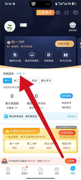 3、在个人中心页面中,找到切换题库的选项并点击,进入题库选择页面。