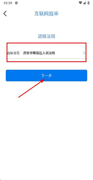 1、在互联网庭审页面选择法院后,点击下一步按钮,进入验证码登录页面。