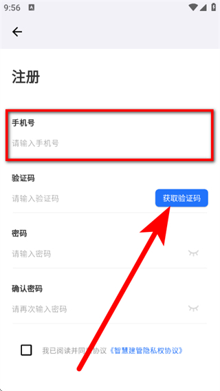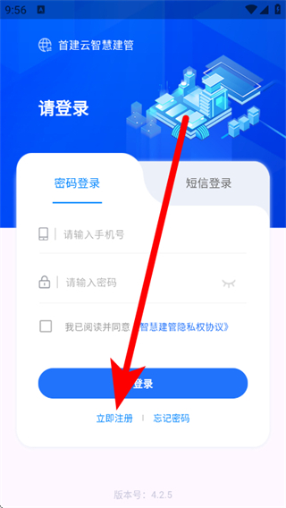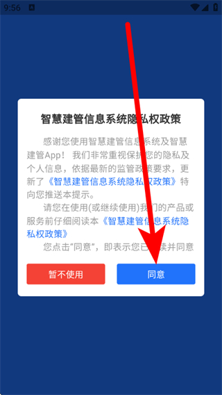 1、打开智慧建管,在弹窗点击弹窗里的同意,进入登录页面。