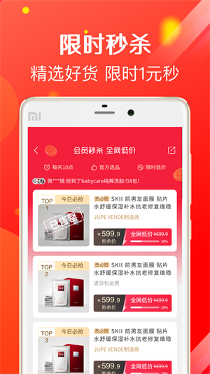 - 会员秒杀活动每天参与,在每天的上午10点可以参与秒杀活动,用全网底价秒杀大牌好货;