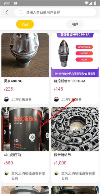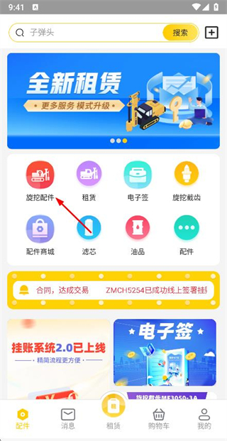 1、在首页点击旋挖配件选项,进入旋挖配件的商品列表页面。