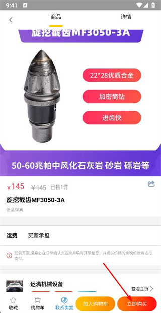 3、在商品详情页面点击立即购买按钮,完成该商品的购买流程。