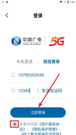 4、完成信息填写后,点击勾选协议,点击立即登录按钮,即可完成登录操作。