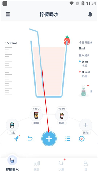 3、返回主页面后,即可查看今日已喝水量等数据。