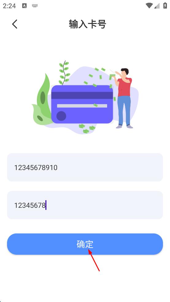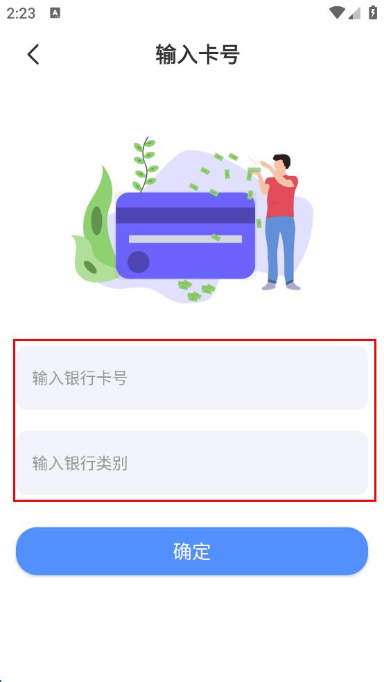 3、在输入卡号页面,分别在对应输入框中准确填入银行卡号和银行类别等信息。