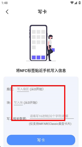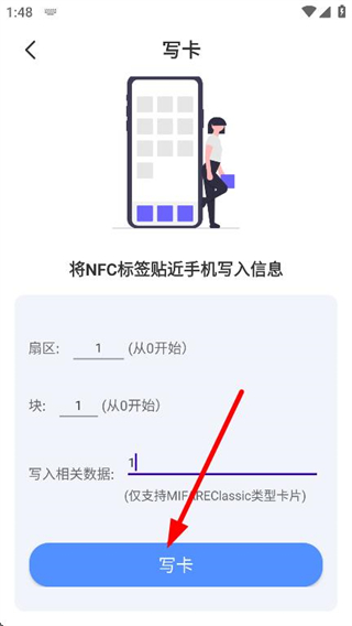 3、点击页面底部的写卡按钮,即可完成信息写入操作。