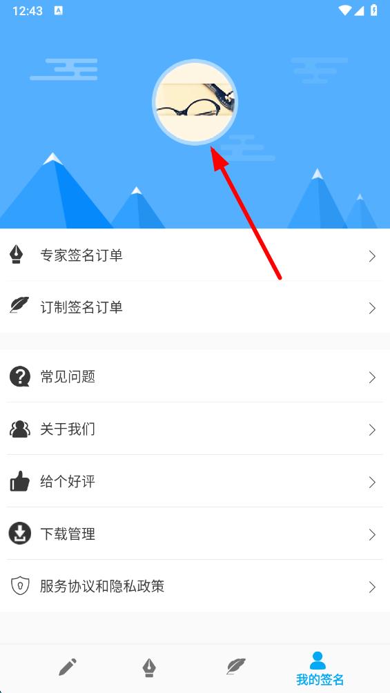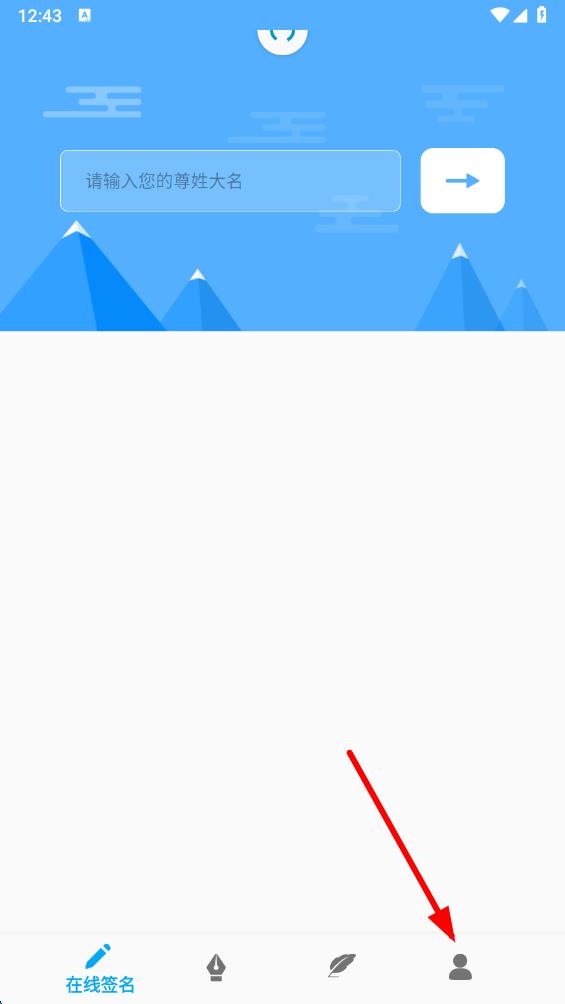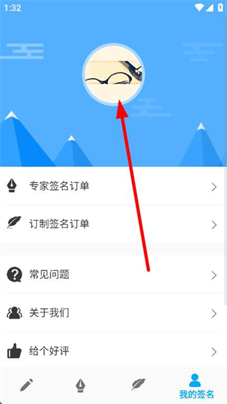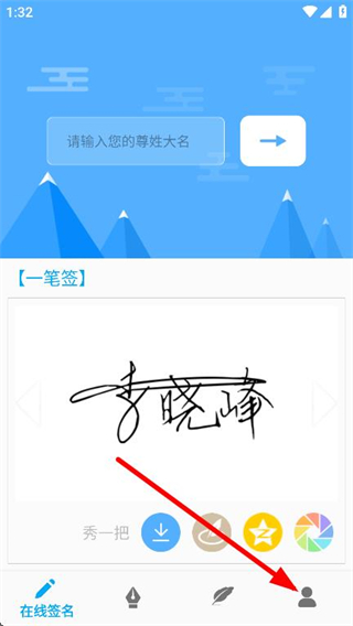 1、打开艺术签名app,点击底部导航栏最右侧的我的签名图标,进入个人相关界面。