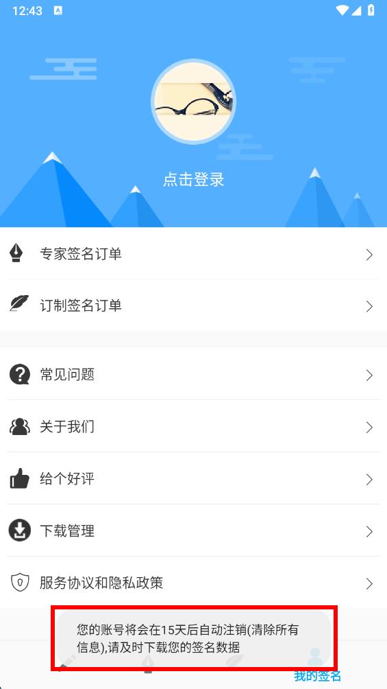 4、确认注销操作后,账号将会在15天后自动注销,在此期间请及时下载您的签名数据。