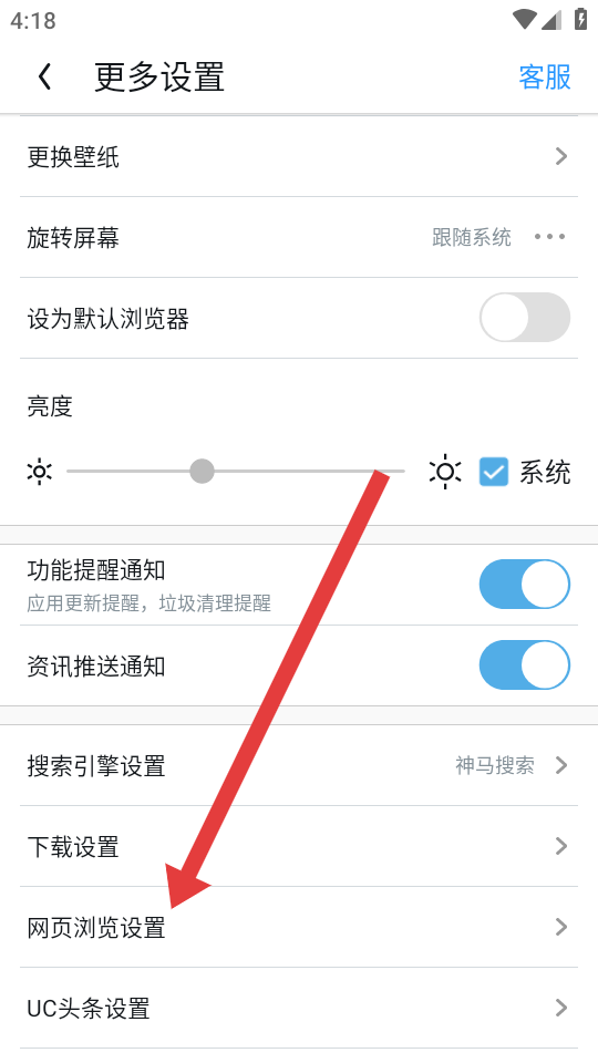 2、在更多设置页面中找到并点击网页浏览设置选项,进入网页浏览相关设置界面。