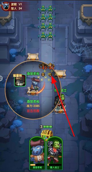 1、选择出战角色布置在战场中,角色会自动攻击进入攻击范围的敌人,同时可查看角色的战力和当前波数的敌人数量。