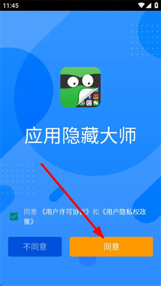 1、打开应用隐藏大师APP,勾选隐私政策后点击同意按钮。